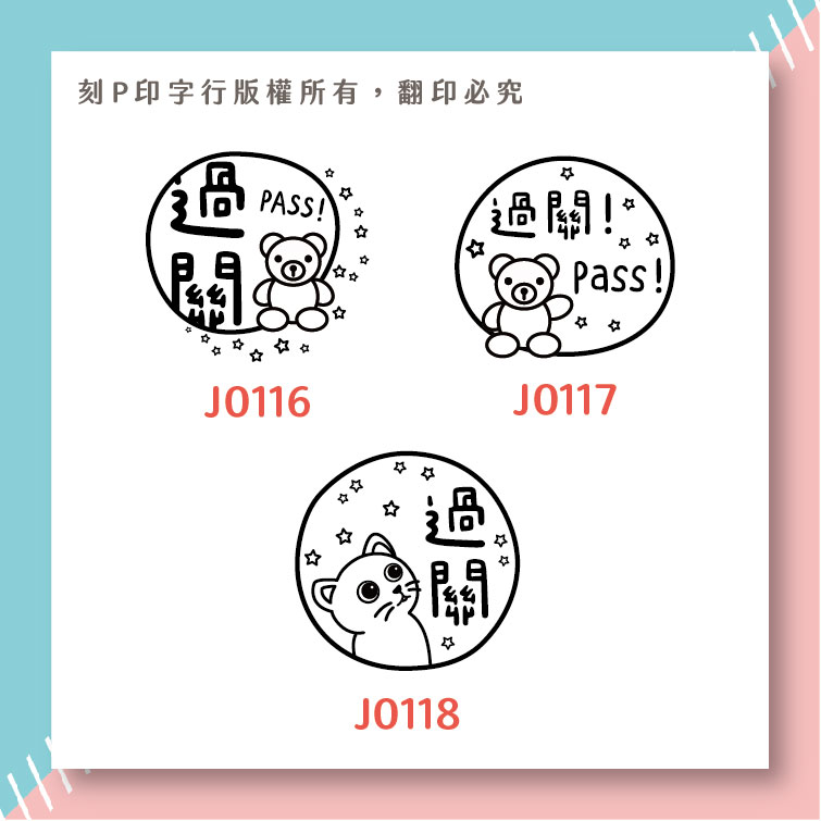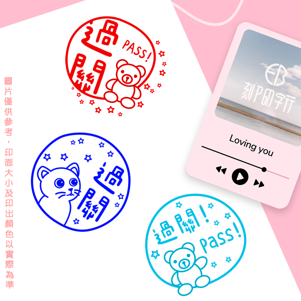 可愛評語印章 過關 印章直徑2.6公分